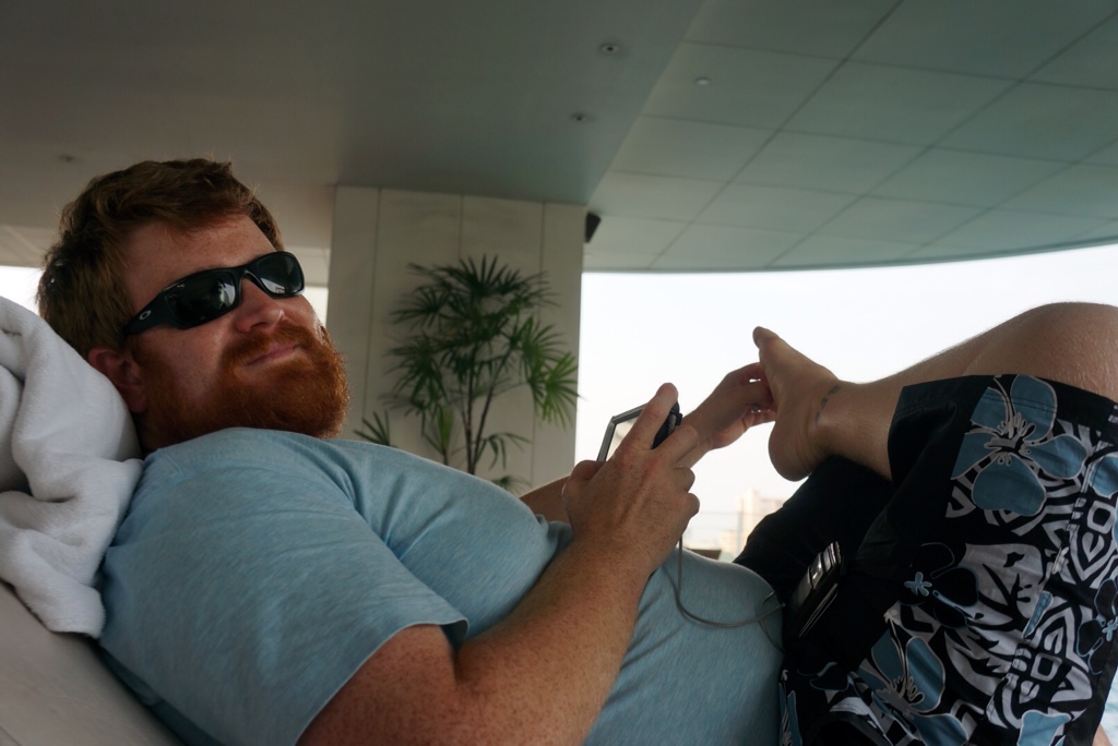 Liam feeling perfectly fantastic the morning after the first night fiasco!