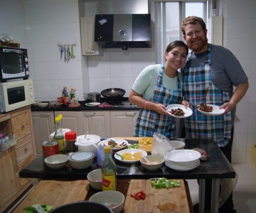 We also had arranged to do a cooking class while in Shanghai. There were four of us in the class, including us, a girl from Germany, and a girl from France. We had a blast. We first got a tour of a local market, which was a little smelly, to learn about the ingredients we'd be using in the class. After the market we headed to a small apartment nearby where the class would be taught. We made three different recipes (sweet and sour pork, Kung pao chicken, and spicy beef) which all turned out delicious. The only downside was the chef didn't speak any English so all questions and answers had to be interpreted, and the cooking area was rather small for four people.