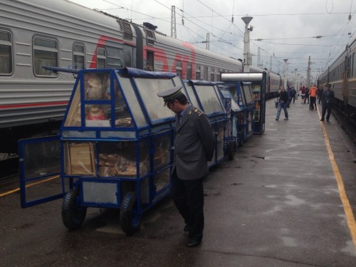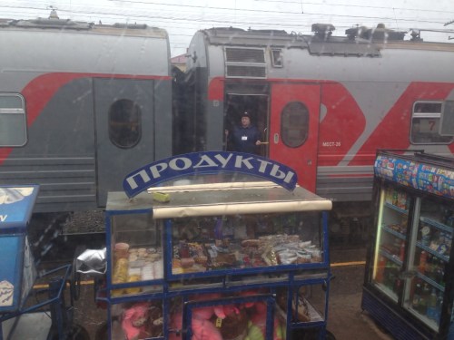 At the train station waiting to board to Moscow