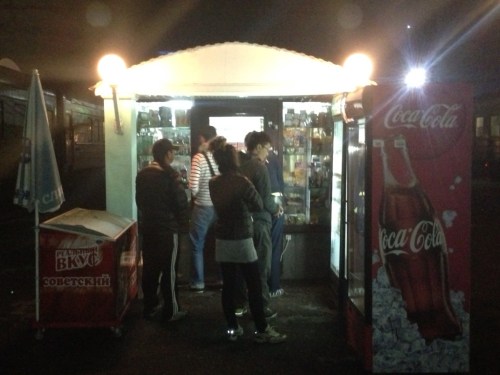 After sitting for a few minutes, we realized that we forgot to stop by an ATM to get cash for the trip. We figured we might not have an opportunity at any of the stops to find an ATM and it was highly unlikely the babushkas would be excepting Visa. So I waited in the diner while Scott ran out in the rain to go find an ATM. While waiting for Scott to come back, I was awkwardly stared at by two old Russian men drinking beer, watched a belligerently drunk guy almost fall over trying to find a table to sit at, and watched a young fellow eat two entire cans of some sort of weird meat out of a can that he'd pulled out of his backpack. What did we get ourselves into?