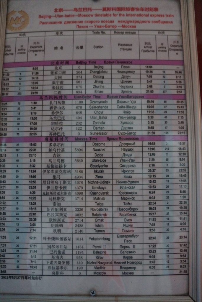 The trek across Siberia was definitely a once in a lifetime experience. The scenes we saw outside the windows were at times amazing and at other times depressing. However, if we were to do this ride again we would probably do it a little differently. We would definitely arrange our schedule to be on the Rossiya train #1 (a much nicer train) from Moscow to Irkutsk (Lake Baikal), where we would spend a couple days and then board the Baikal train #10 to Ulan Bator. From there to Beijing is only a one day train ride, so any train would probably be ok for that period of time.