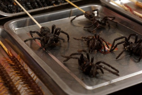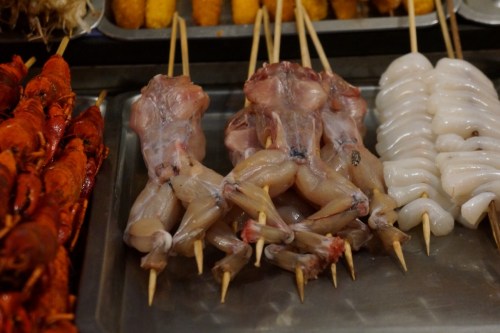 That evening we decided to go out and explore the night markets that happened to be right near our hotel. The snack street was bustling with locals and tourist loading up on a wide range of snacks including fried star fish on a stick, tarantulas and scorpions on a stick, and you guessed it…animal testicles! We also wandered down to another little night market close by, but didn't stay long as the smell there was unbearable and we also saw a few people rummaging and eating out of the dumpsters. It was a little scary and very sad.
