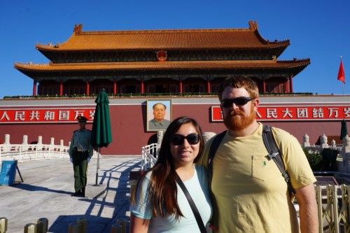 The following day was a our three year wedding anniversary so we planned out a full day of sight seeing and a nice dinner. We booked a guided tour that included Tianeman Square, the Forbidden City, a jade and silk factory, and the Great Wall. Our tour guide's name was Shine and he was great! We had three other people that were on the tour with us and it was quite comical. There was an older couple from Slovak Republic and a man from Saudi Arabia. While At the Forbidden City, Shine was explaining to us how the emperors had many wives and concubines, the Saudi guy on our tour commented that he was only allowed to have four wives! Scott thought this was hysterical.