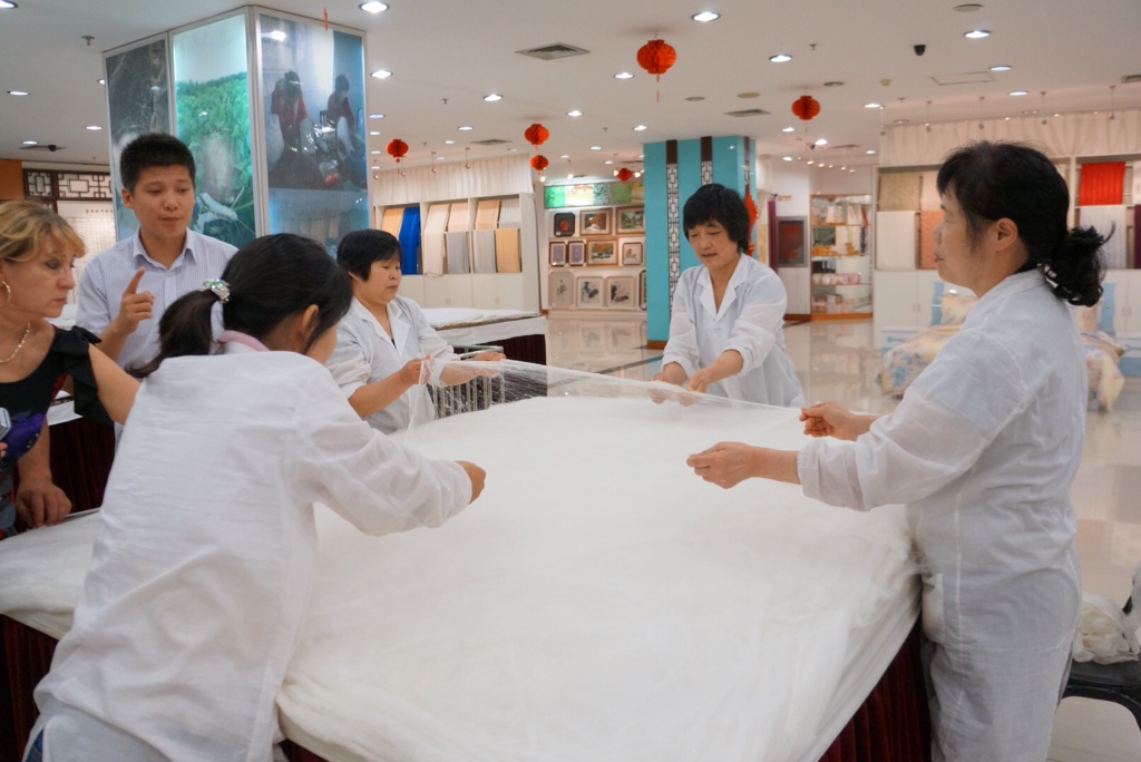 Showing off my purchase from the silk factory